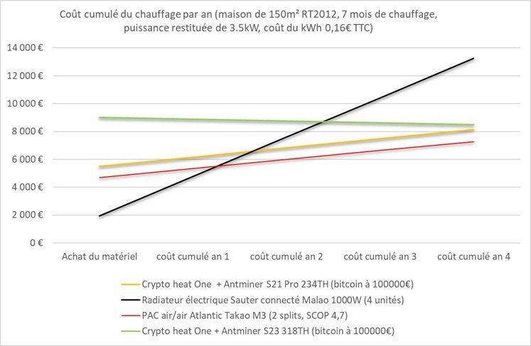 Des cryptomonnaies grâce au mineur qui chauffe votre habitat. Cette cryptomonnaie est sur votre portefeuille crypto (Ex : Ledger). Vous pouvez la transférer sur un échange centralisé (Ex : Binance, Coinbase, …), pour la revendre en € (amortissement en € de votre facture d’électricité) ou échangeable (contre une autre cryptomonnaie) ou à placer pour qu’elle rapporte des intérêts.